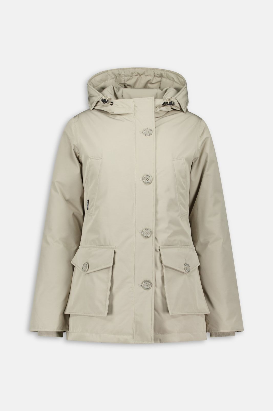 The 4 Pocket Parka V2 has the same fit as the regular 4 Pocket Parka, but the fabric is slightly more flexible. The jacket has four pockets on the front, two of which can be closed with snap buttons and two with large buttons. The parka features a single front zipper, which can also be closed with large buttons. On the inside, there is a zip pocket, and the lining is padded, making it highly resistant to extreme temperatures. The parka is water-repellent and windproof.