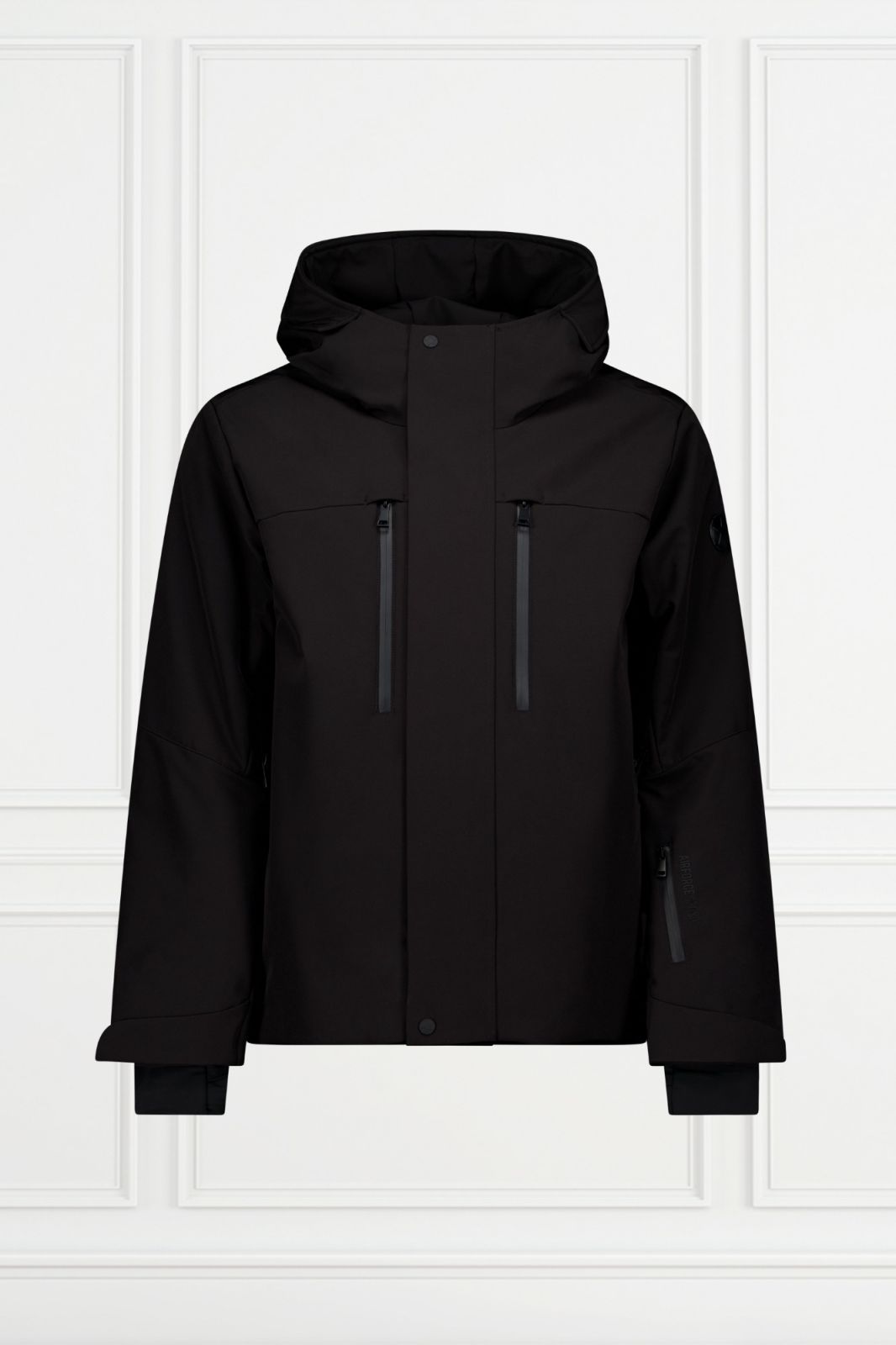 La Bruke Mountain Jacket est coupe-vent et déperlante. La capuche n’est pas amovible, mais elle est réglable à l’arrière pour un ajustement parfait. La veste possède deux poches intérieures zippées et une jupe pare-neige. À l’extérieur, on trouve deux poches poitrine avec fermetures éclair étanches, deux poches latérales à fermeture dissimulée et une poche pour le forfait de ski sur la manche gauche, avec le logo Air-Force au-dessus. Un badge noir est placé sur l’épaule gauche. Les poignets sont ajustables avec des bandes velcro et équipés de manchons avec passe-pouces. Des fermetures d’aération vont du haut du bras jusqu’à la poitrine pour un confort optimal sur les pistes. La Bruke Mountain Jacket se ferme par une fermeture éclair étanche, recouverte d’un rabat avec boutons-pression et velcro.