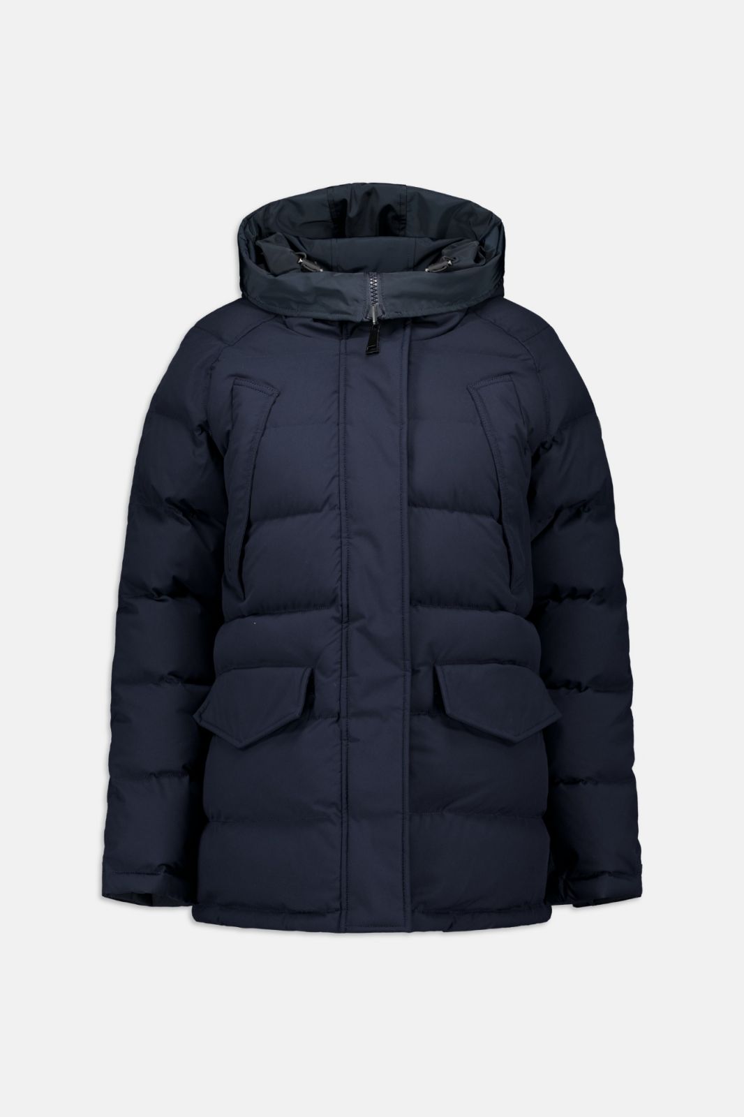 La parka réversible est la veste d’hiver idéale. Elle peut se porter de deux façons, vous permettant de créer deux looks complètement différents avec une seule pièce. La parka est dotée d’une capuche fixe et possède quatre poches de chaque côté, dont deux poches poitrine. La fermeture éclair haute est complétée par des boutons-pression pour une meilleure protection contre le froid. Un côté est réalisé dans un tissu mat, tandis que l’autre présente une légère brillance. Sur le côté matelassé, le patch emblématique Air-Force est apposé sur la manche gauche. La parka réversible est déperlante et coupe-vent.