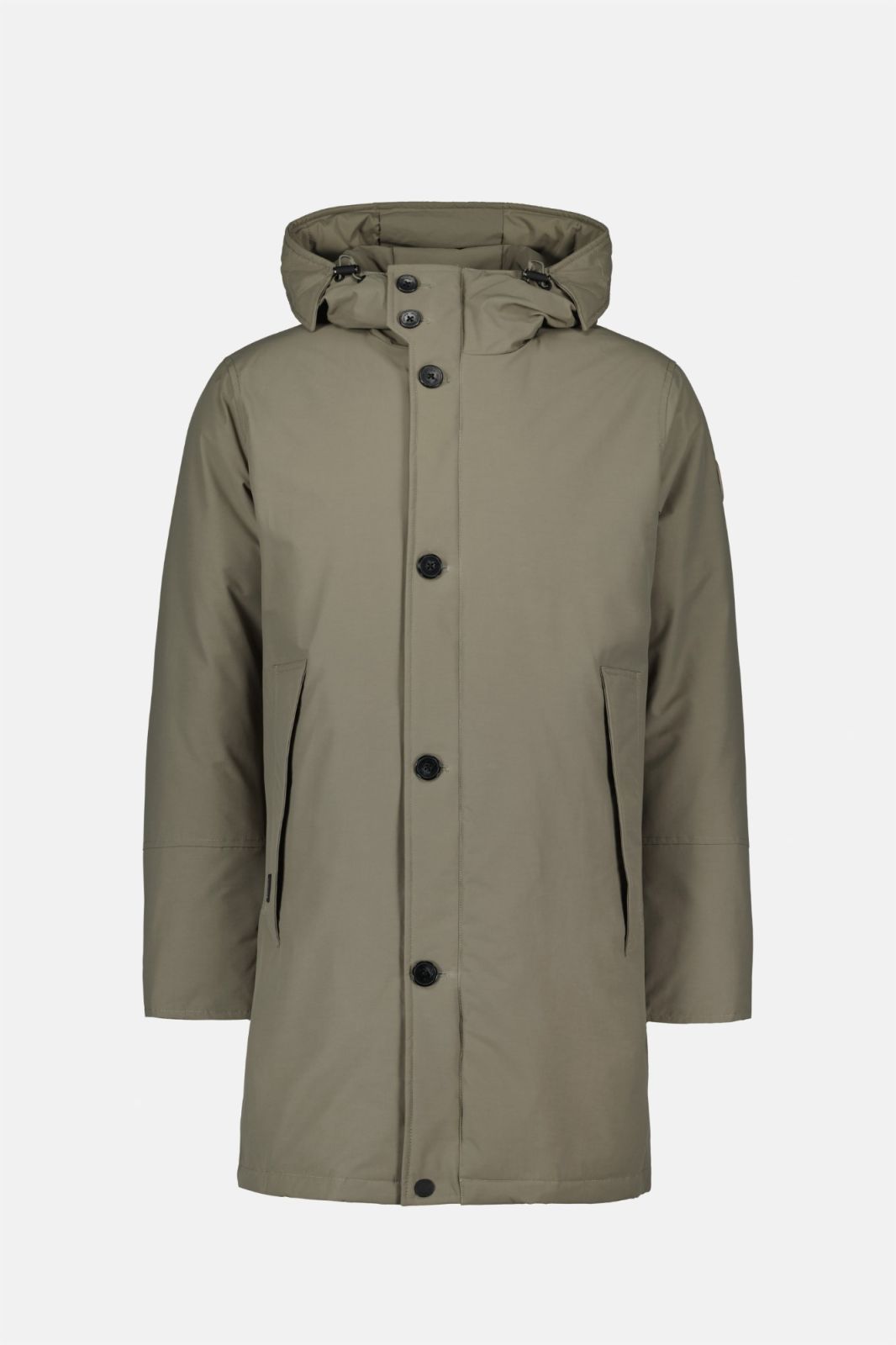 The Jack Parka is a winter coat from the Air-Force collection. The coat features a front zipper that is covered with buttons. In addition, the Jack Parka has two flap pockets at the front, a high fixed hood, and an Air-Force logo badge on the left sleeve. The coat is windproof and water-repellent.