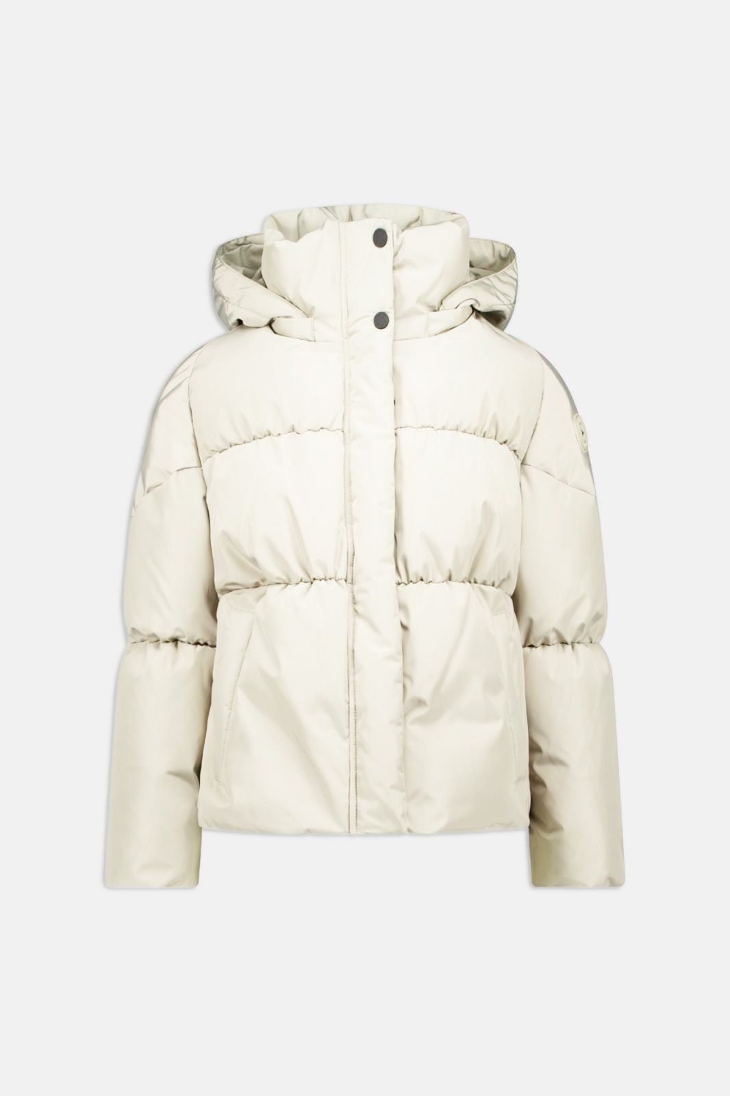 The Maya Puffer Jacket is a short winter jacket from Air-Force. The jacket features a high zipper closure with press buttons and two side pockets with zippers. The hood can be detached from the jacket. It also includes a functional inner pocket, perfect for storing keys or other small items. The elastic cuffs prevent wind from entering, keeping you warm and comfortable. The Maya Puffer Jacket is water repellent and windproof.