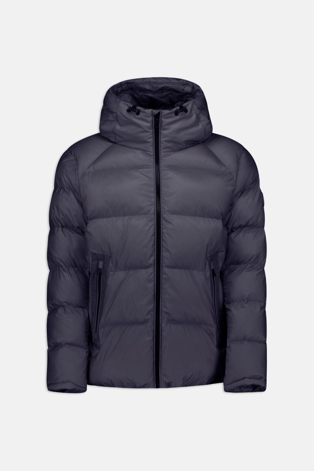 The Nate Jacket is a padded winter jacket with a subtle sheen finish from the Air-Force collection. It features two zippered side pockets at the front, an inside pocket, and a fixed hood that can be adjusted with drawstrings. On the left sleeve, there is an Air-Force logo badge. Thanks to the elastic cuffs, the jacket provides a snug fit that keeps out the cold and wind. The Nate Jacket is both windproof and water-repellent.