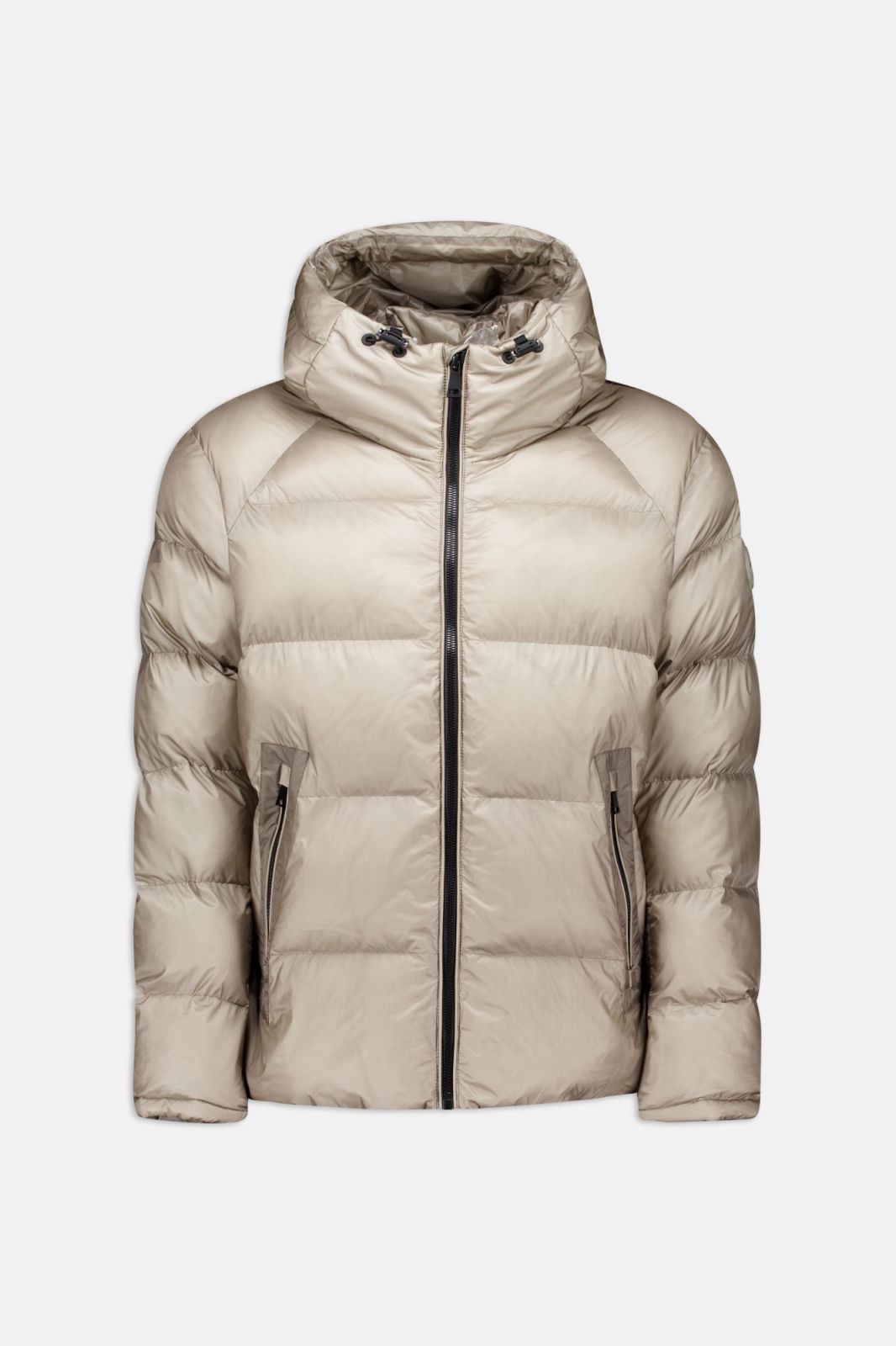 The Nate Jacket is a padded winter jacket with a subtle sheen finish from the Air-Force collection. It features two zippered side pockets at the front, an inside pocket, and a fixed hood that can be adjusted with drawstrings. On the left sleeve, there is an Air-Force logo badge. Thanks to the elastic cuffs, the jacket provides a snug fit that keeps out the cold and wind. The Nate Jacket is both windproof and water-repellent.