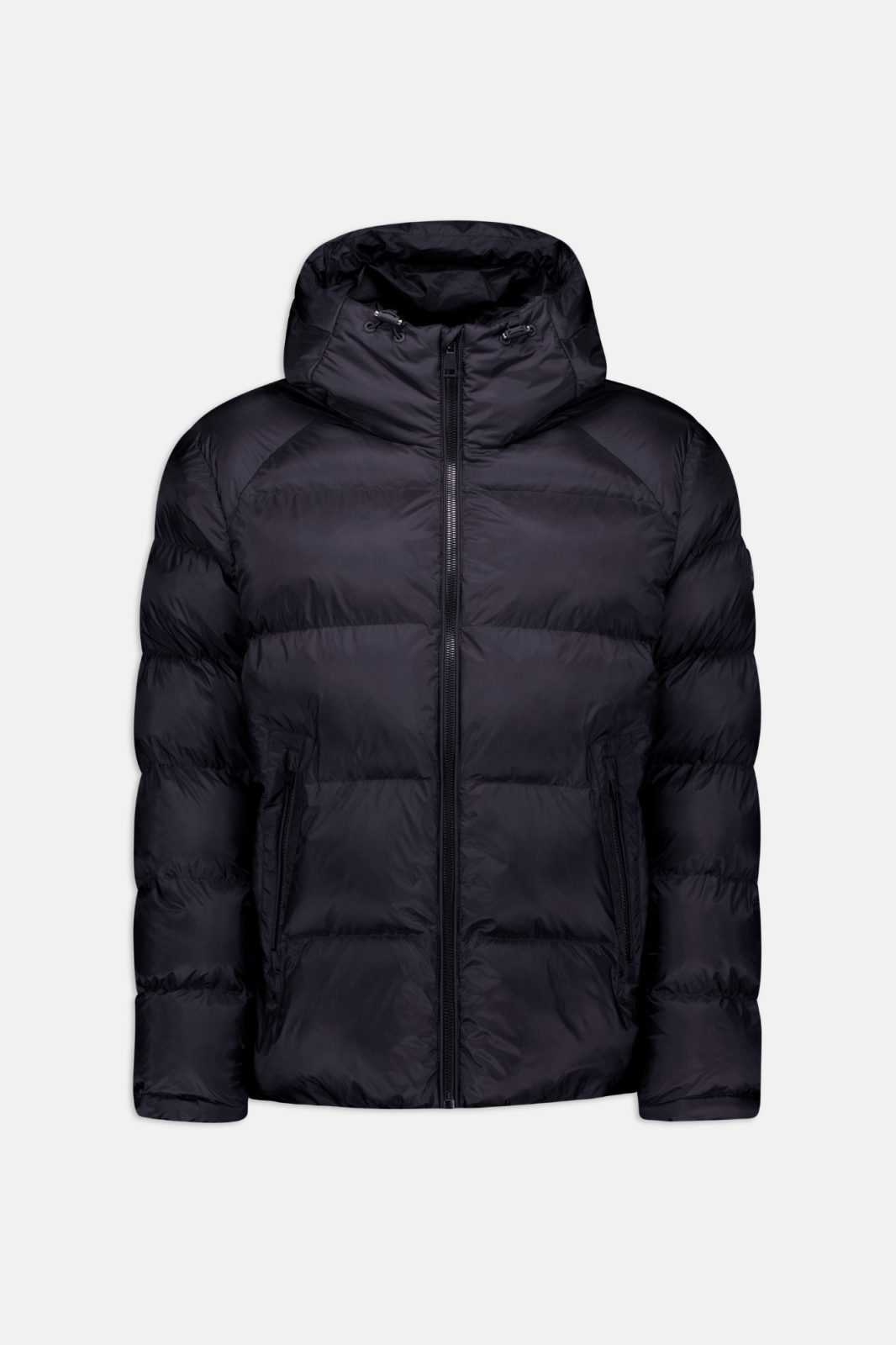 The Nate Jacket is a padded winter jacket with a subtle sheen finish from the Air-Force collection. It features two zippered side pockets at the front, an inside pocket, and a fixed hood that can be adjusted with drawstrings. On the left sleeve, there is an Air-Force logo badge. Thanks to the elastic cuffs, the jacket provides a snug fit that keeps out the cold and wind. The Nate Jacket is both windproof and water-repellent.