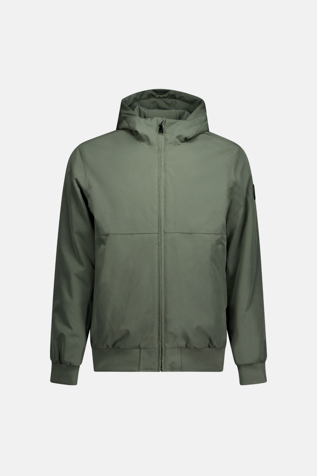 The Padded Bomber is a short, padded jacket made of softshell material and is part of our winter collection. The jacket features a high collar and a fixed hood. At the front, there are two zippered side pockets and an inside pocket with a Velcro closure. On the left sleeve, you’ll find the signature Air-Force logo badge. Thanks to the elastic cuffs and the fitted waistband, the jacket keeps out the cold. It is both water-repellent and windproof.