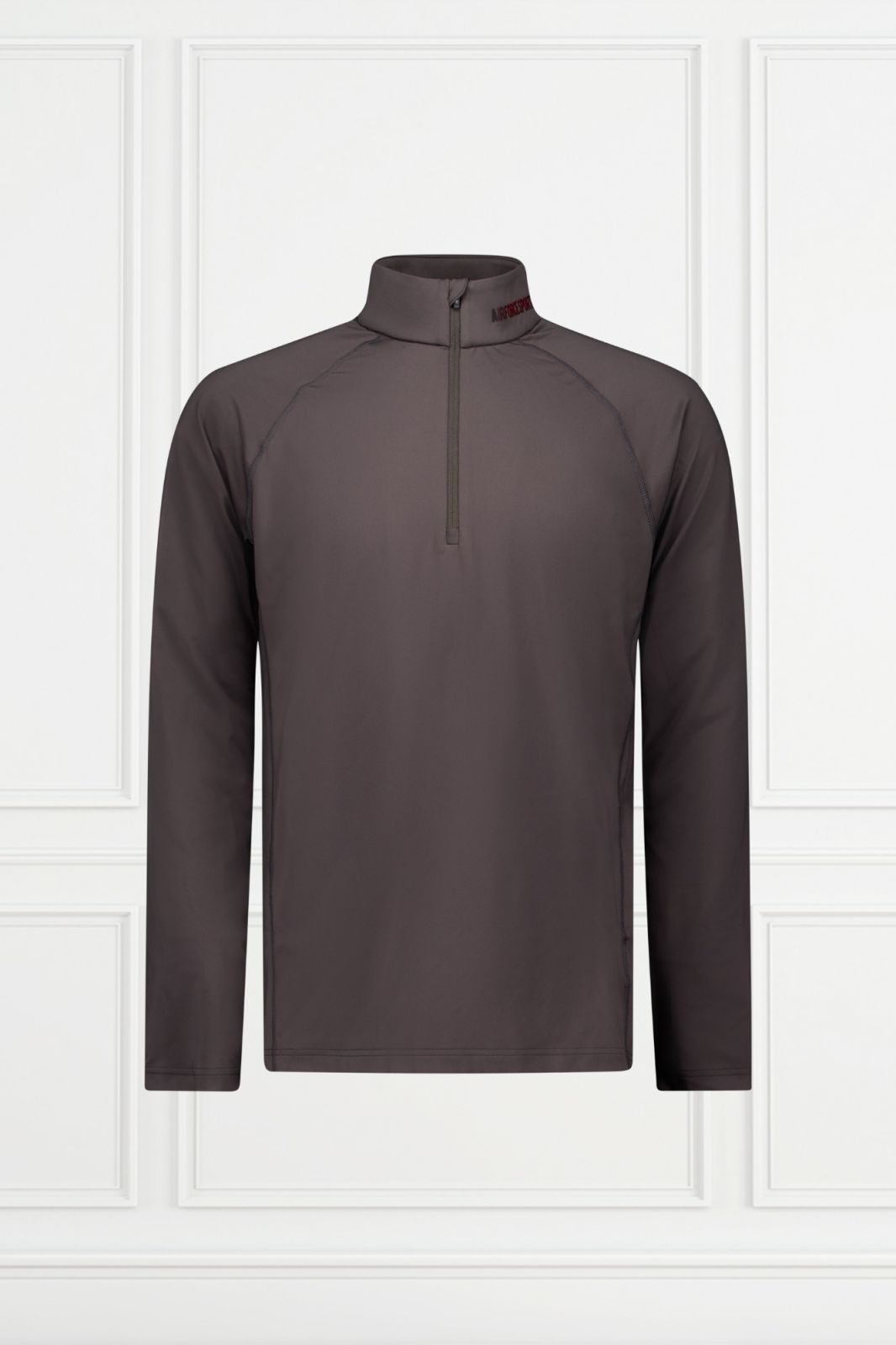 The Powder Mountain Pully keeps you warm on the slopes. Its stretch fabric ensures comfort, and the high collar with zipper protects against the cold. The Airforce Wording logo is positioned to the left of the zipper.