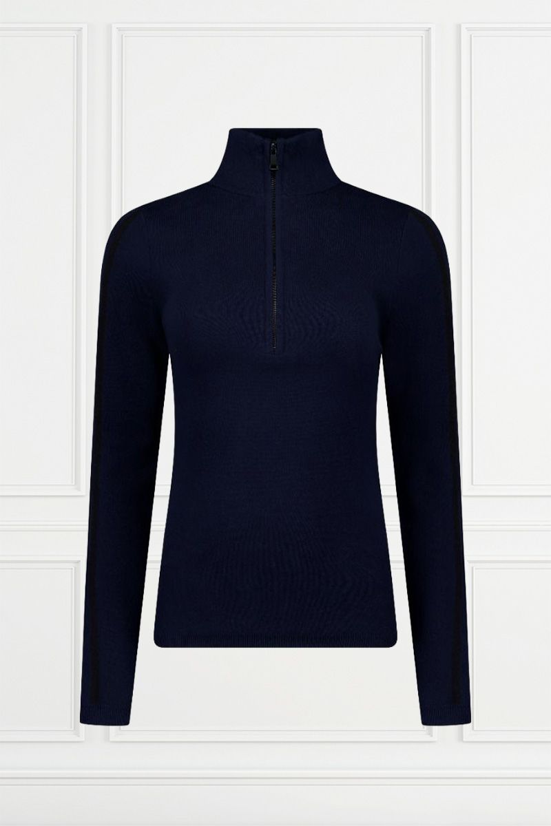The Stella Star Knitted Pully features a high collar with a zipper down to the chest and is perfect for colder days on the slopes. The pully fits closely to the body and has three stars on the sleeves. It offers a comfortable fit and can be easily combined with other Air-Force ski items.
