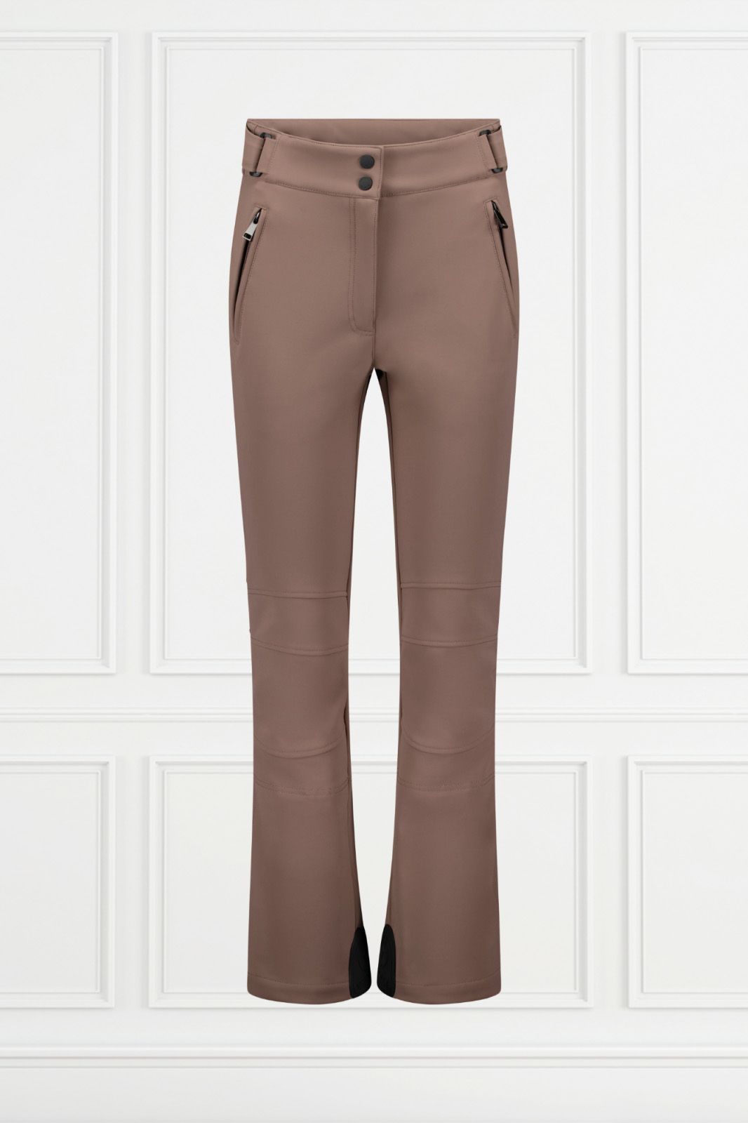 The Sundance Mountain Ski Pants are water repellent, windproof, and made from stretchy softshell material for optimal freedom of movement. The pants feature a slim fit and a high-waisted design for extra comfort while skiing. Adjustable Velcro straps at the waist ensure a perfect fit and keep the cold out. Zippers at the bottom of the legs make it easy to wear the pants over ski boots, and the two zippered pockets provide convenient storage. The pants are windproof and water repellent.
