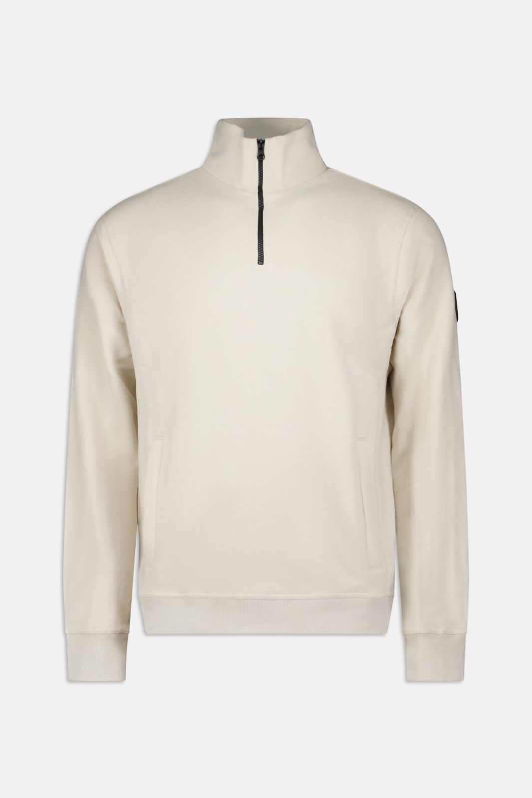 The Sweat Quarter Zip features a high black zip closure. On the left chest there is a rubber 3D Air-Force wording logo, and on the left sleeve a black Air-Force logo badge. The sweater has two zippered pockets, and the ribbed cuffs at the hem and sleeves ensure a good fit.